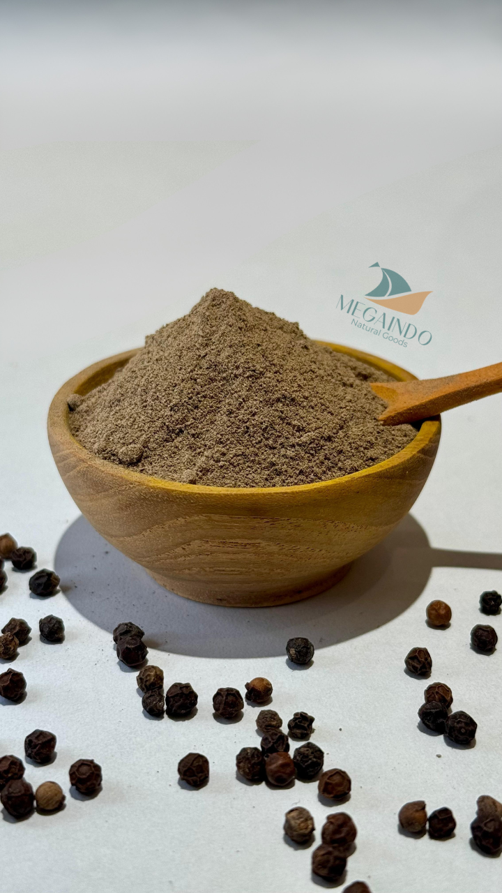 Our Black Pepper Powder is produced from carefully selected Indonesian black pepper berries that are cleaned, dried, and finely ground to preserve their natural aroma and strong, distinctive flavor. Known as one of the most widely used spices worldwide, black pepper adds depth and warmth to a wide range of culinary applications. At Megaindo Natural Goods, we ensure that our black pepper powder is processed with strict quality control to maintain its purity, freshness, and consistent quality. It is suitable for use in food processing, seasoning blends, sauces, and various culinary industries, making it an ideal choice for global markets.